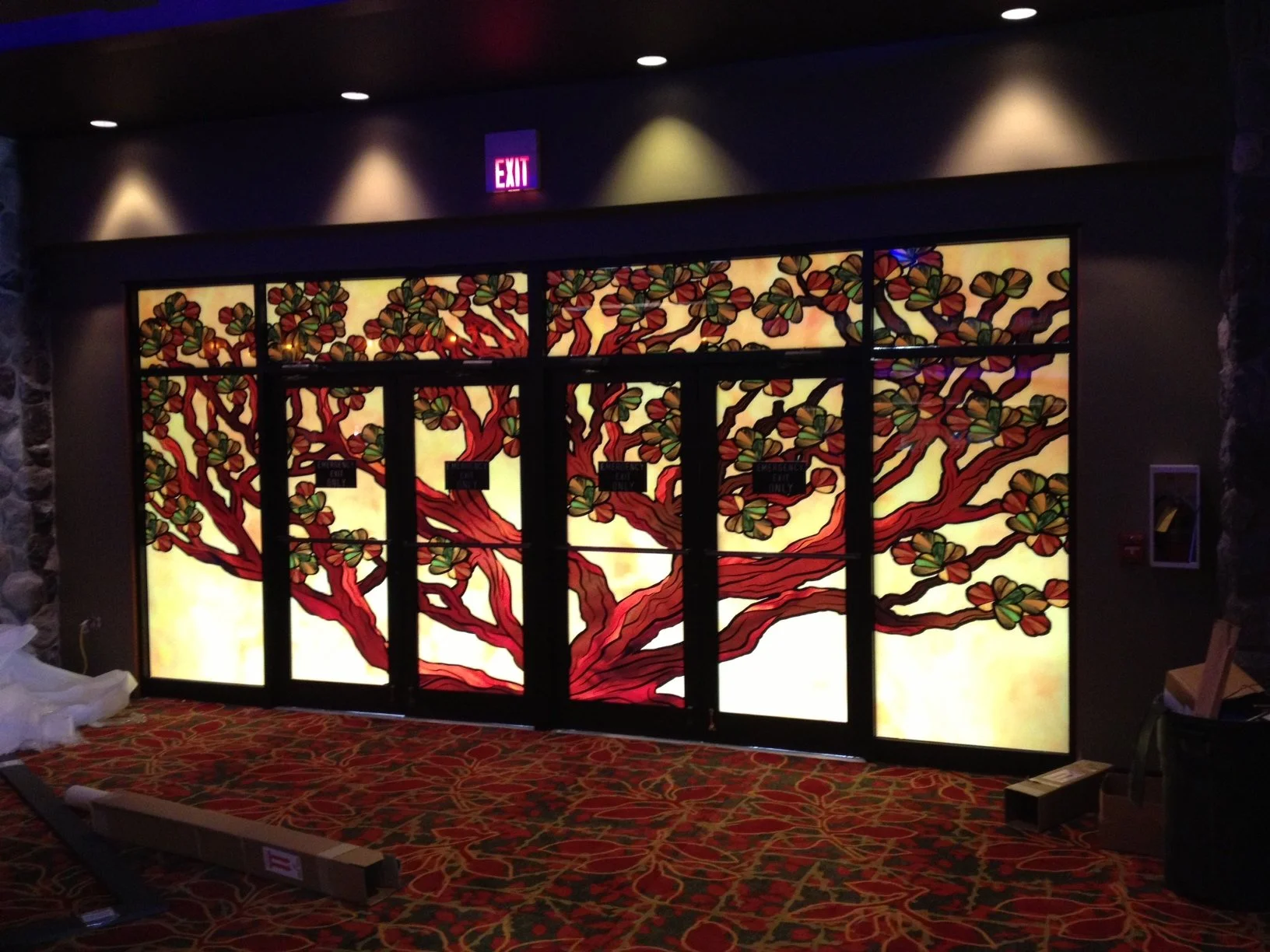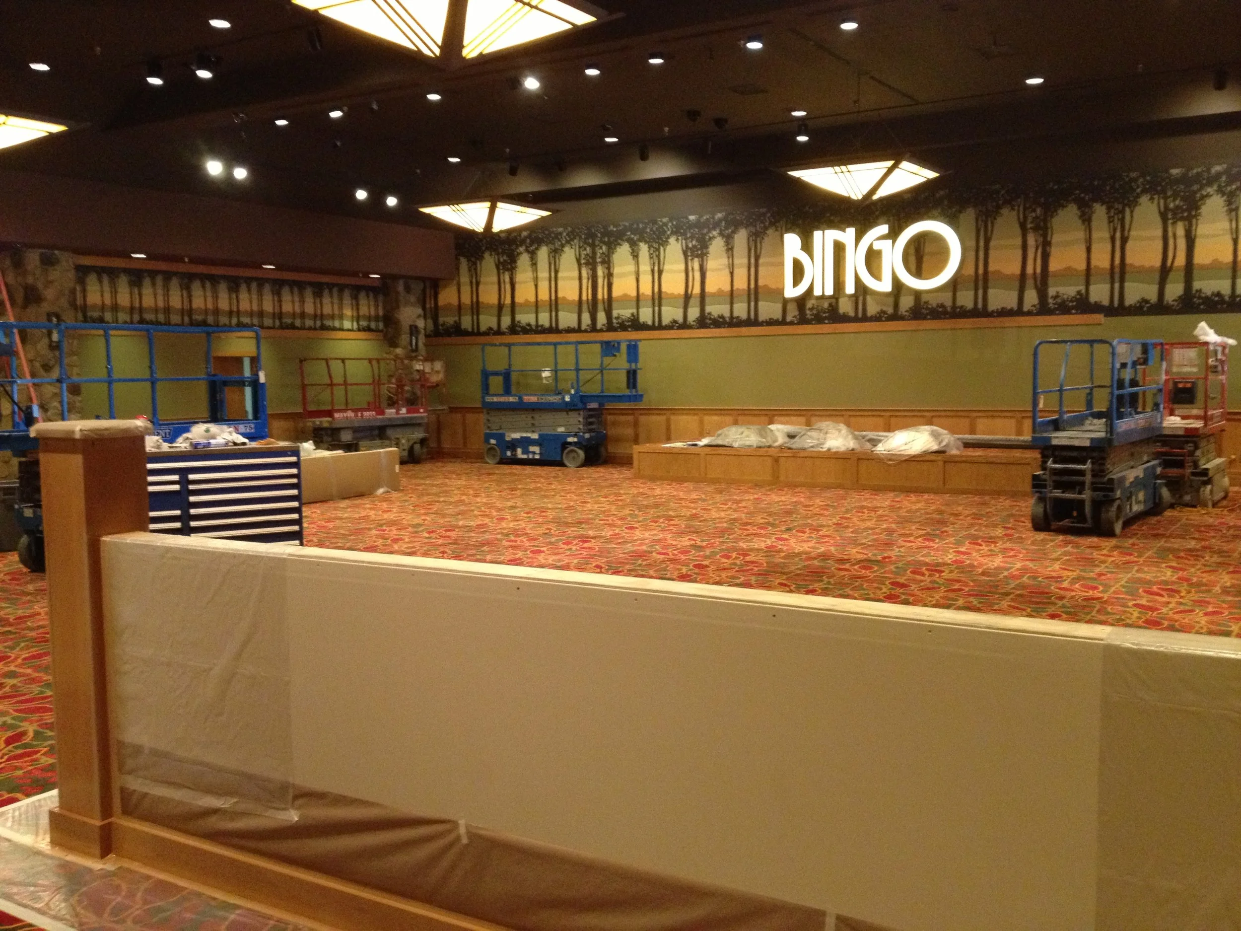 Casino wide custom concepted, designed and created high resolution murals from abstract to natural trees to stained glass, to patterns like oranges, to natural touches. Varied by room and theme.